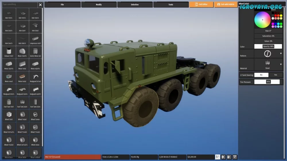 Запутывающие и невероятно захватывающие приключения ждут вас в уникальном симуляторе конструктора от разработчиков Brick Rigs! В этой игре вы станете настоящим мастером по созданию транспортных средств из деталей Лего и погрузитесь в мир творчества и безграничных возможностей.
