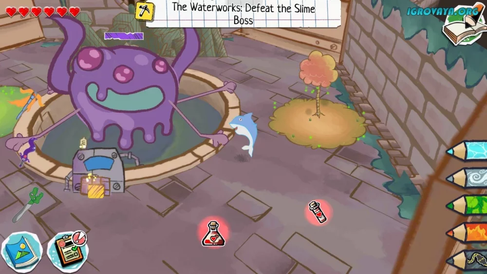 Вас ждут невероятные сражения с разнообразными врагами, креативные головоломки, захватывающие мини-игры и веселые персонажи, такие как обезумевшие овцы и дикие хомячки. Развлекайтесь, выполняйте задания и открывайте новые цвета и карандаши, спасая этот необычный мир от чернильных пятен.