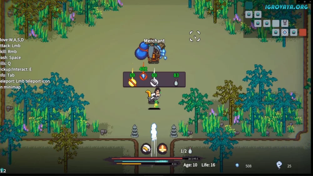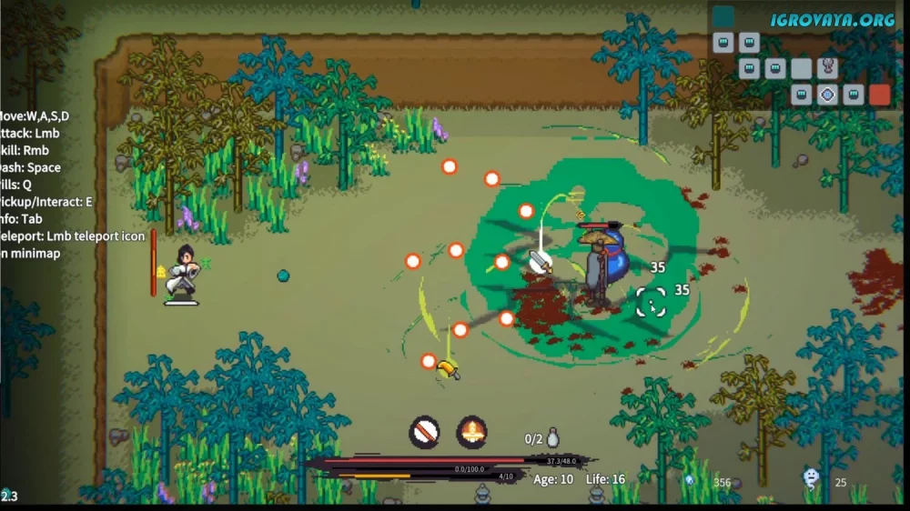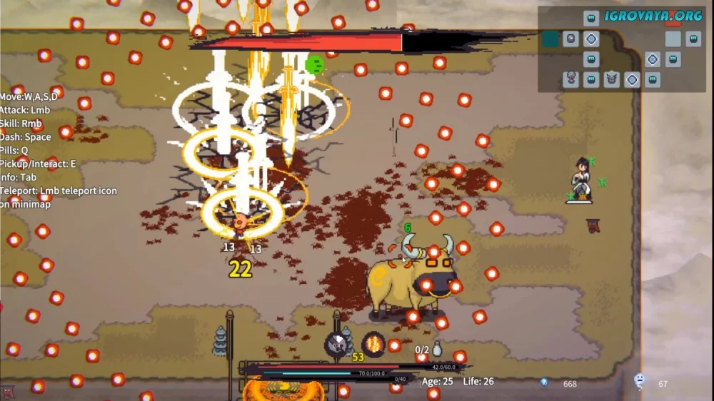 - Исследуйте карту, сражайтесь с врагами и применяйте различные приемы, чтобы уклоняться от атак и наносить урон.