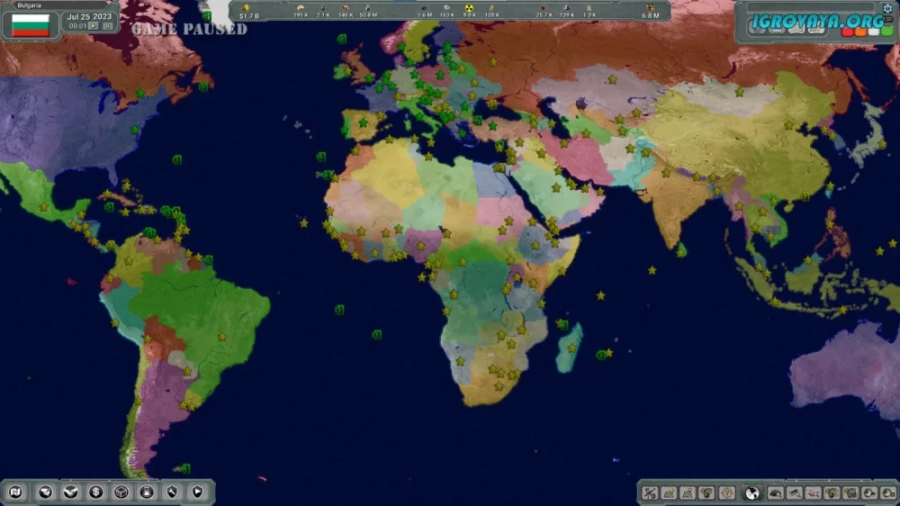 - Разнообразие действий - управляйте государством, развивайте экономику, стройте военные базы.