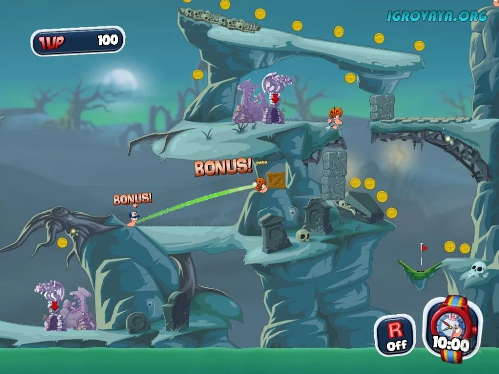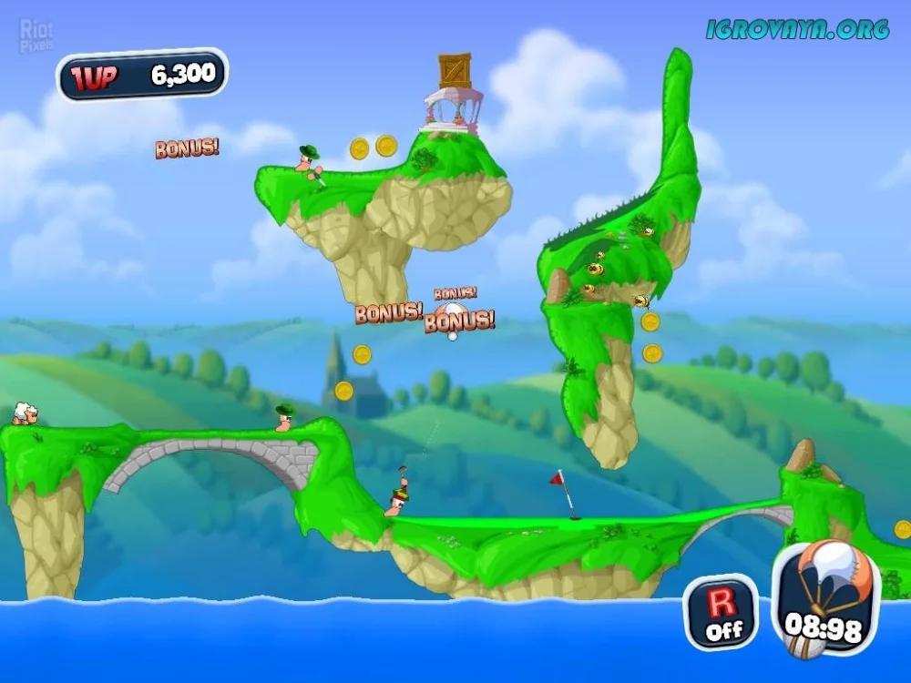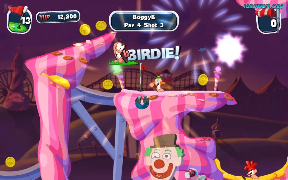 Не упустите возможность переиграть уровни, чтобы получить максимум удовольствия от миссий или попробовать улучшить свои результаты. Worms Crazy Golf - это увлекательное приключение с уникальным подходом к знакомой серии игр, где вам предстоит использовать логику, стратегию и точность, чтобы одержать победу на гольфовом поле.