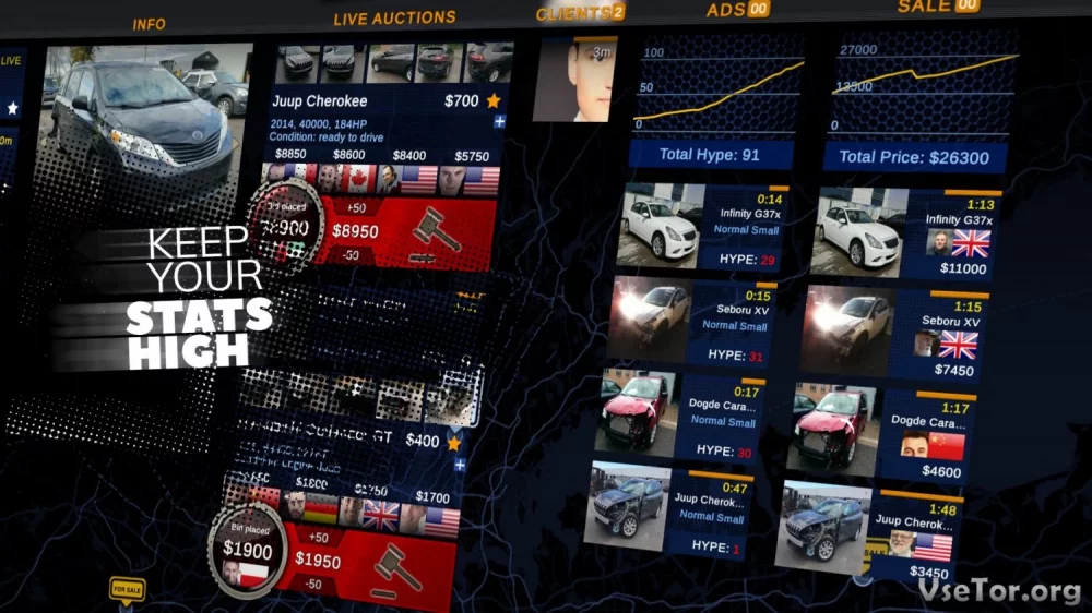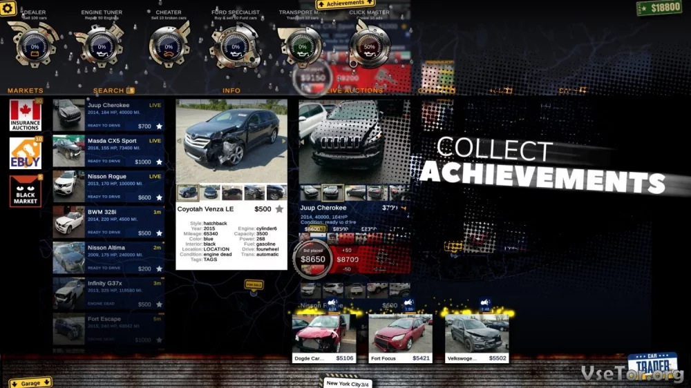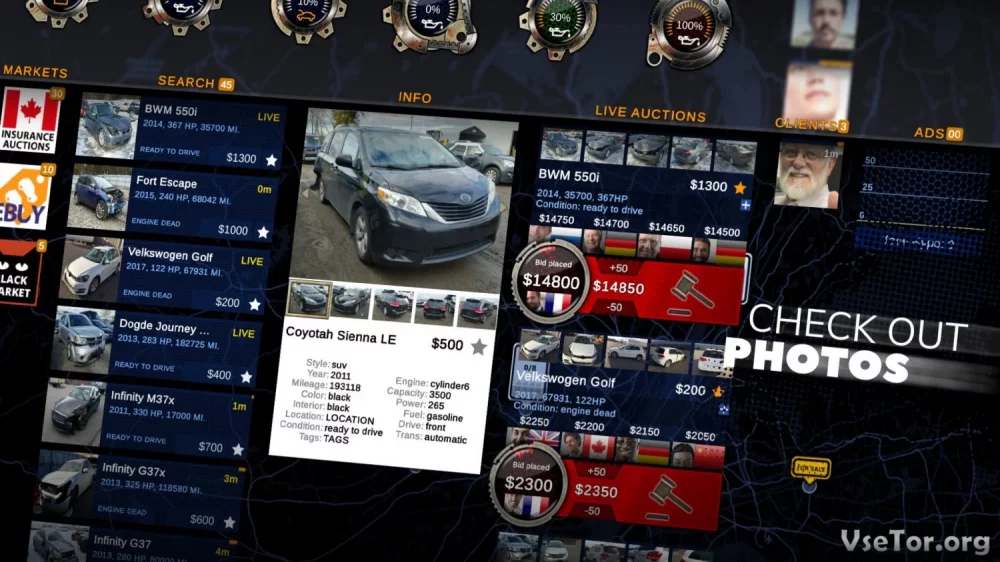 - Участвуйте в аукционах, выкупайте дешевые автомобили, восстанавливайте их и перепродавайте с прибылью. Вас ждут увлекательные задачи и возможность делать все, что позволит вам заработать на автомобильном бизнесе.