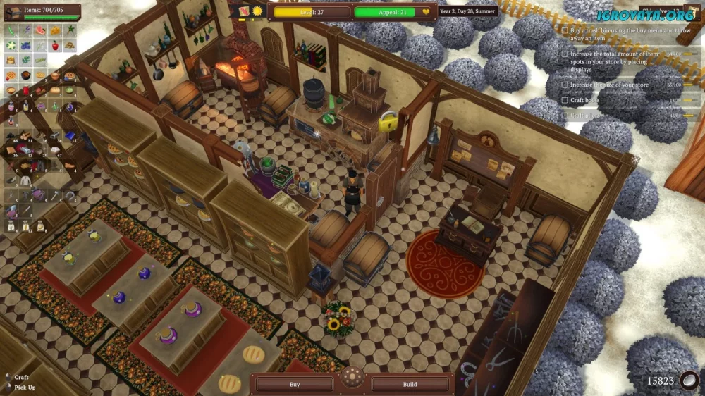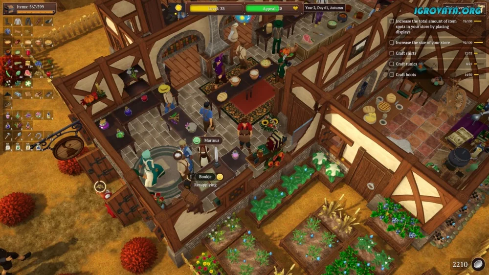 - Участвуйте в различных виде деятельности: торговле, поиске редких товаров, обустройстве магазина.
