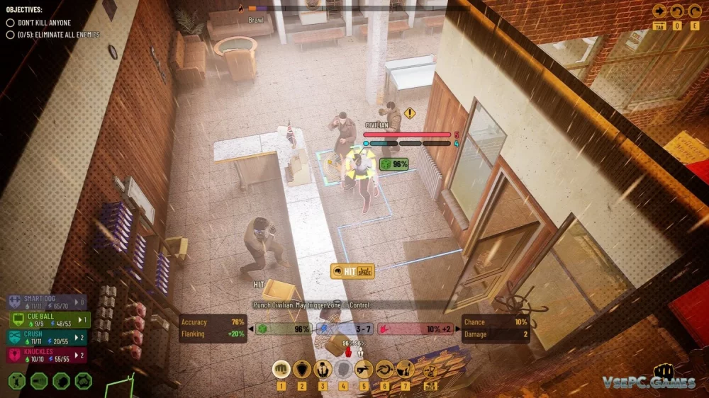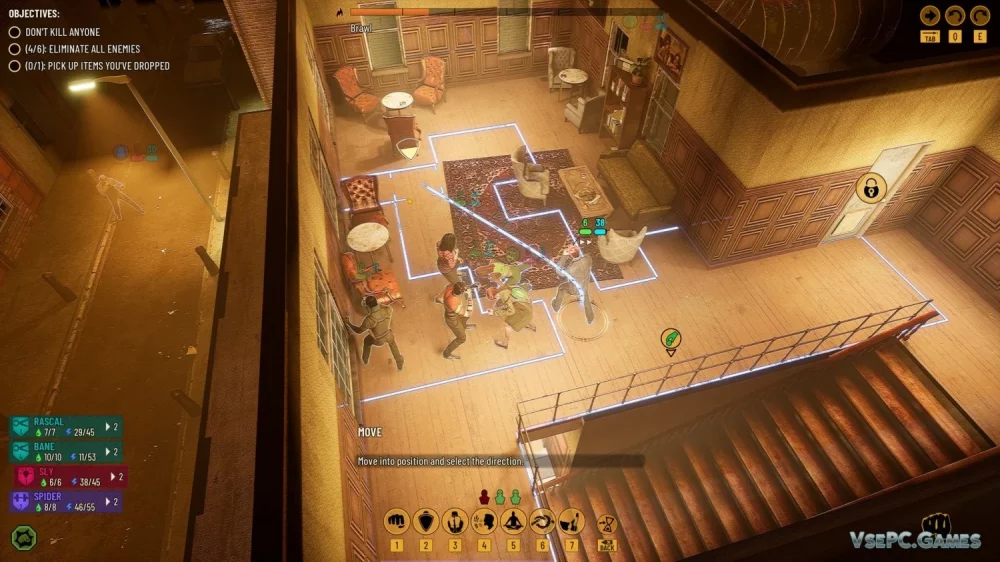Особенностью Company of Crime является акцент на рукопашных боях, где тактика и стратегия играют важную роль. Драки будут требовать продуманных ходов, подкрадываясь к противнику и атакуя в нужный момент. Вам предстоит использовать различные приемы, такие как отвлечение или подколка, чтобы одержать победу на улицах Лондона.
