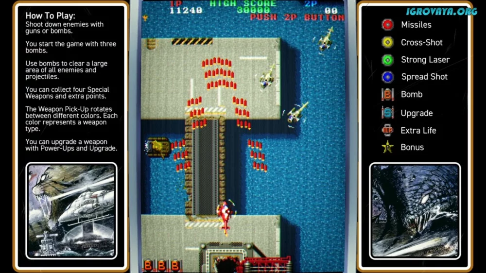 Погрузитесь в атмосферу аркадного шутера с видом сверху с игрой Twin Cobra, которая завоевала сердца японских геймеров еще в 1987 году. Управляйте боевым вертолетом и отправляйтесь в опасные боевые миссии, чтобы показать всю мощь вашего летательного аппарата. Спасайте мир, бомбя танки, сражаясь с вражескими самолетами и находя альтернативные способы уничтожения врагов, которые превосходят вас в вооружении.