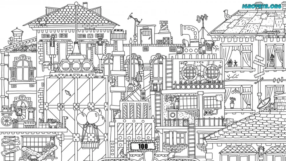 - Искать 100 скрытых котов в черно-белом городе