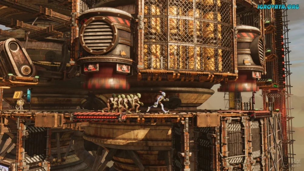 Игра Oddworld: Soulstorm – это захватывающий трехмерный платформер, который продолжает историю Эйба и его борьбы за выживание. После того, как Эйбу удалось спасти соплеменников и сбежать с производства, наступили непростые времена. Около трех сотен мудаконов оказались на свободе, но им пришлось столкнуться с новыми опасностями.