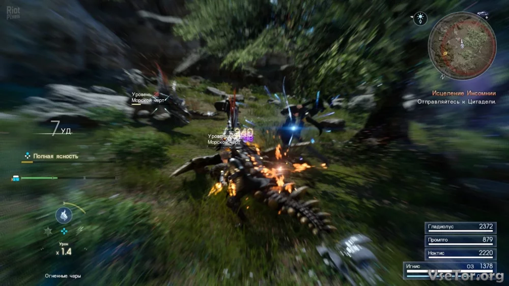 - Исследуйте новый контент, включая карту Руины Инсомнии, где вас ожидают захватывающие битвы, королевский корабль для управления и новые места для рыбалки и открытия.