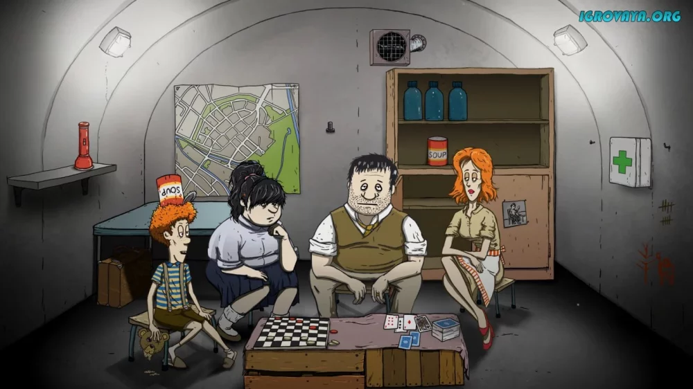 Главная часть игры - это сбор нужных предметов и членов семьи за 60 секунд перед отправлением в бункер. Вам предстоит принимать сложные решения, чтобы обеспечить выживание. В бункере же вам придется бороться за ресурсы, принимать решения о распределении еды и воды между выжившими.