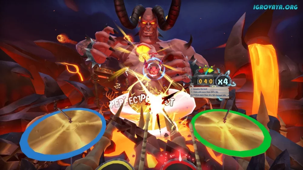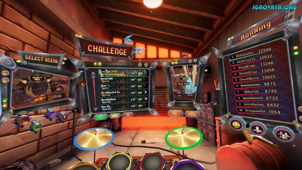 - Погрузитесь в атмосферу ураганного рока и отчаянно бейте по барабанам под авторскую музыку;