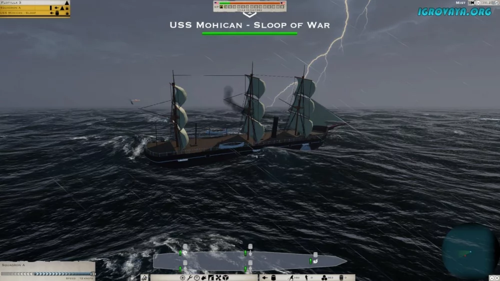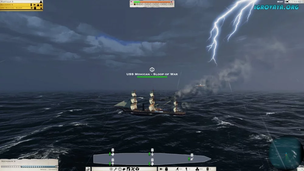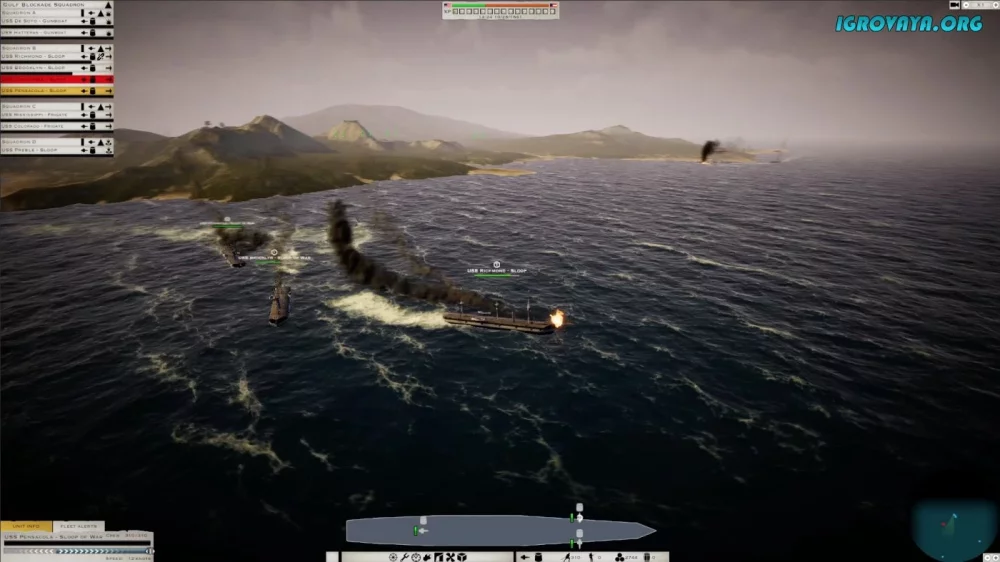 - Возможность управлять флотом как из птичьего полета, так и со стороны отдельных кораблей.