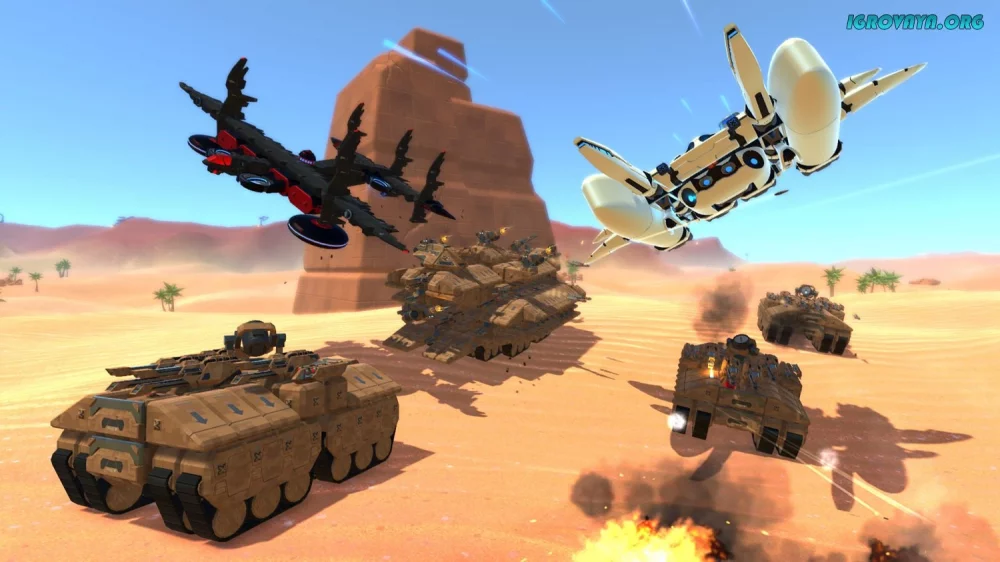 - Возможность создавать уникальные боевые машины, используя множество модулей и ресурсов.