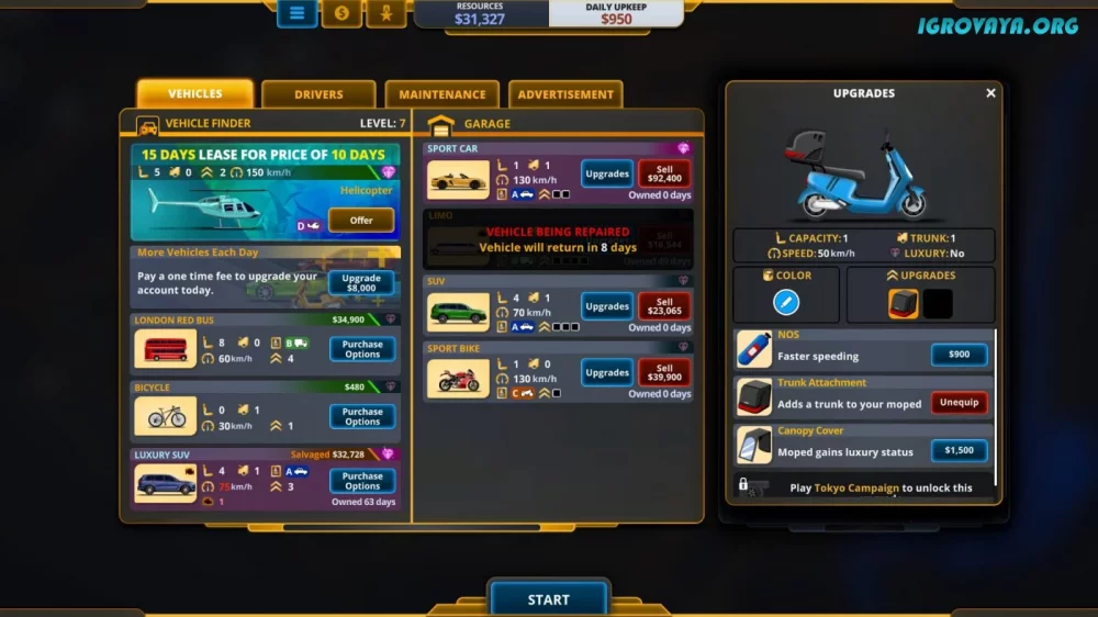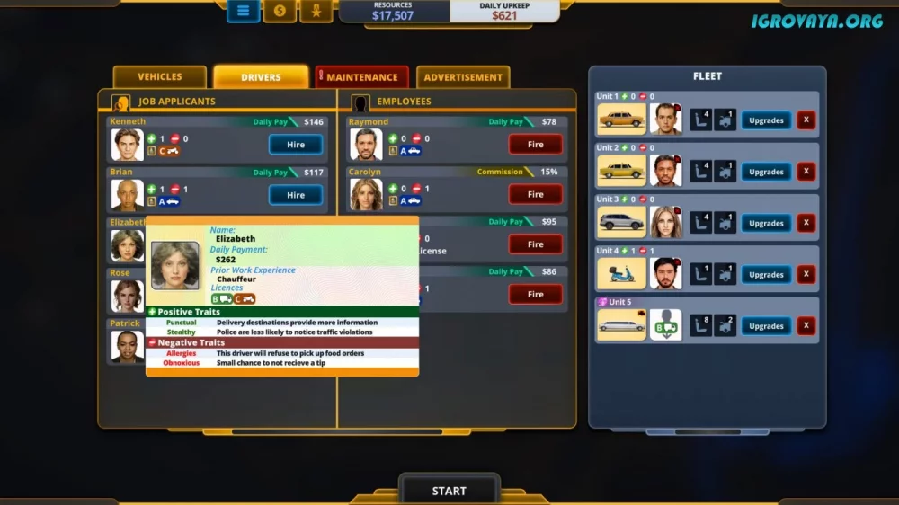 - Станьте многофункциональным менеджером, планирующим маршруты, нанимающим водителей и управляющим автопарком.