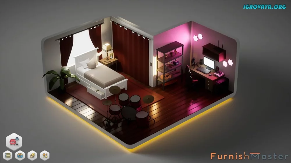Играйте в увлекательный симулятор Furnish Master, который позволит вам расслабиться и проявить свой творческий потенциал. Готовы ли вы к захватывающему путешествию в мире дизайна интерьера? Вам предстоит украсить различные комнаты, начиная от вестибюлей и заканчивая спальнями. Расставляйте мебель по своему усмотрению, экспериментируйте с цветами стен и добавляйте стильные аксессуары. Вы можете создать яркий и экспрессивный интерьер или придерживаться строгого стиля - выбор за вами.