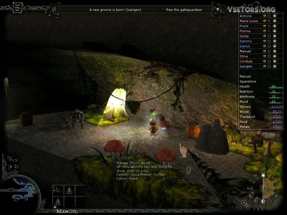 Основной упор в игре делается на развитие воинов, исследование технологий, обеспечение базы ресурсами. Но помимо этого, вас ожидает множество интересных моментов, таких как механика распределения ролей между гномами. Вы будете следить, чтобы каждый гном выполнял свои задачи, отдыхал, работал на благо миссии.