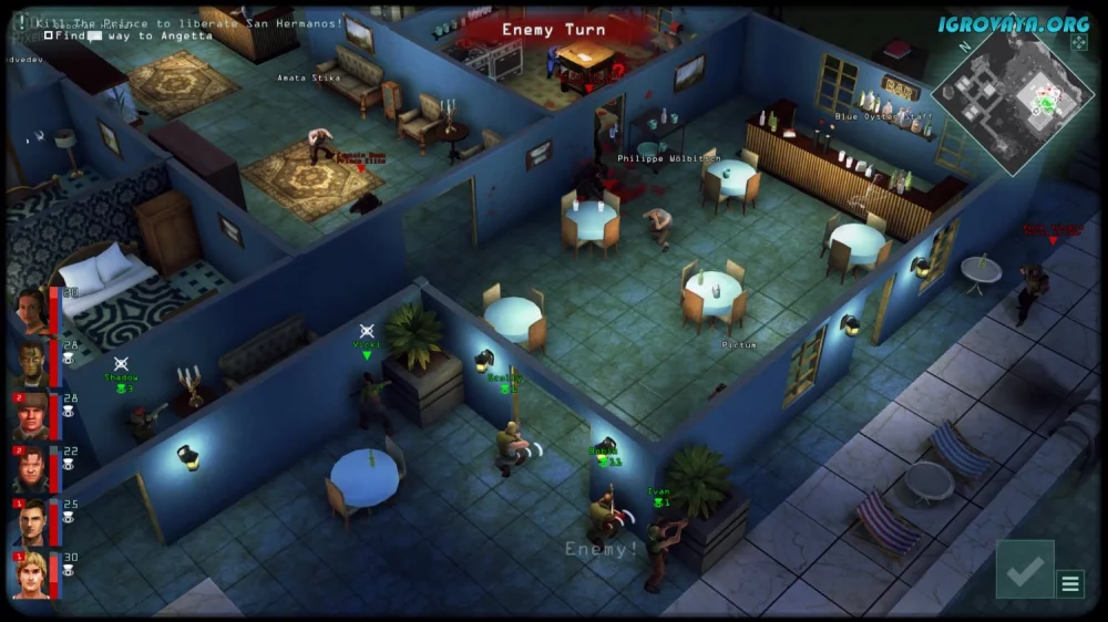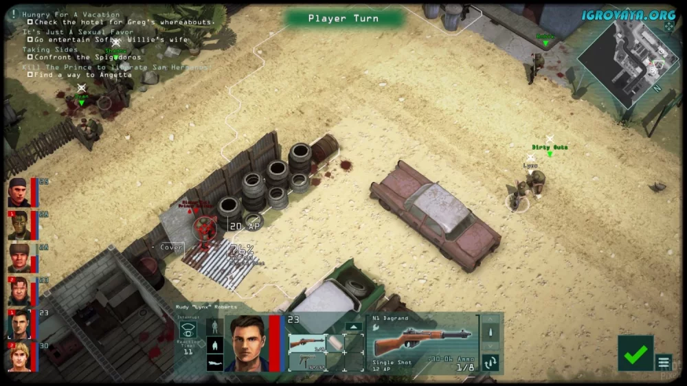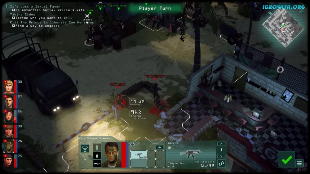 Игровой процесс предлагает типичную тактическую стратегию с упором на тактику и планирование. Управляйте группой наемников с уникальными способностями, выполняйте разнообразные миссии - от военных действий до диверсий.