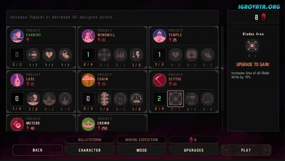 Если вы ценитель рогаликов, то Swarm Grinder станет вашим идеальным выбором. Игра обладает увлекательной системой прокачки, предоставляя вам огромное количество возможностей для творчества. Вы можете выбирать как умения, так и активные и пассивные навыки, создавая уникальные комбинации. Найдите идеальное сочетание под свой стиль игры и покажите, на что вы способны.