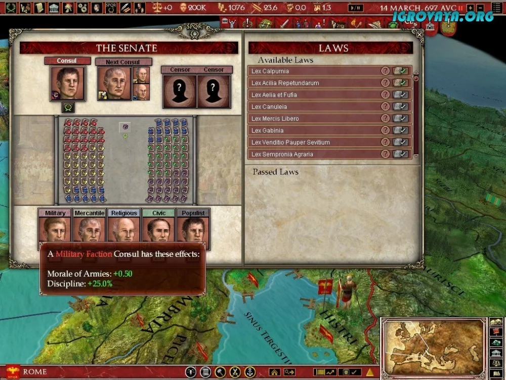 Europa Universalis: Rome предлагает игрокам новые вызовы и возможности для демонстрации своих стратегических навыков. Скачайте торрент с нашего сайта и отправьтесь в увлекательное путешествие по Древнему Риму, где каждое ваше решение может повлиять на ход истории.