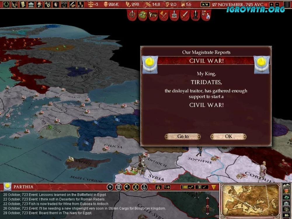 - Местные жители также могут поднять мятежи против вас, выражая свое недовольство и создавая угрозу для стабильности вашей империи. Будьте внимательны к любым изменениям внутри страны и предотвратите потенциальное восстание.