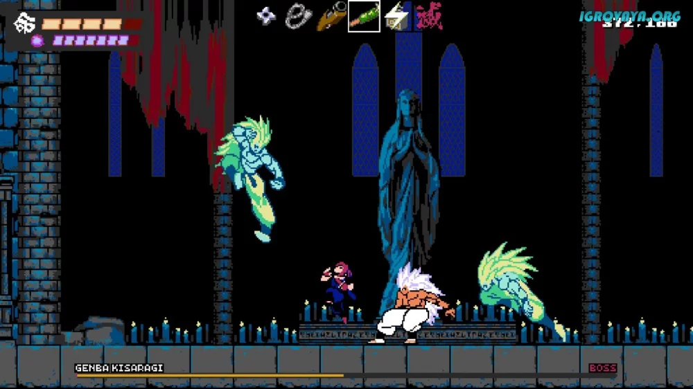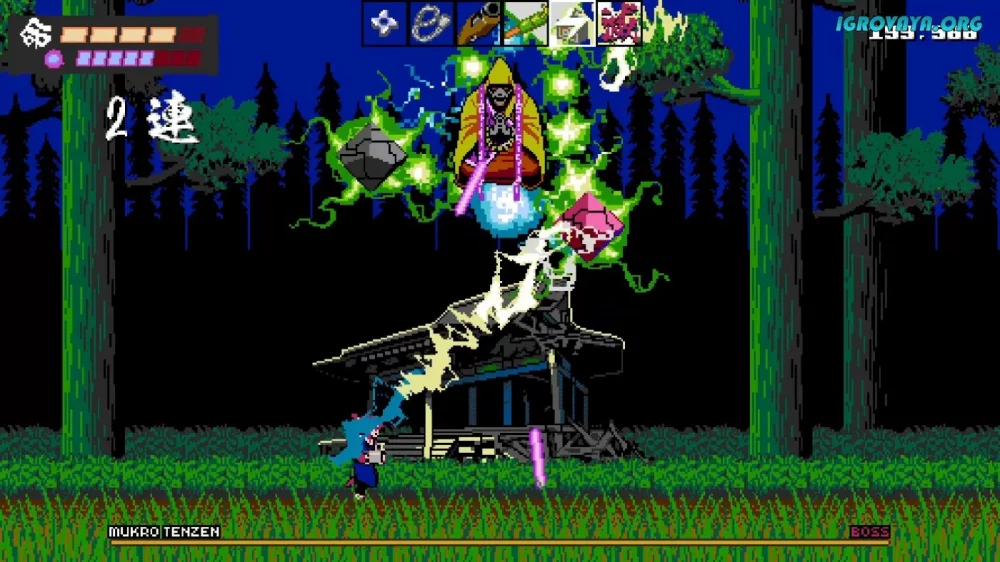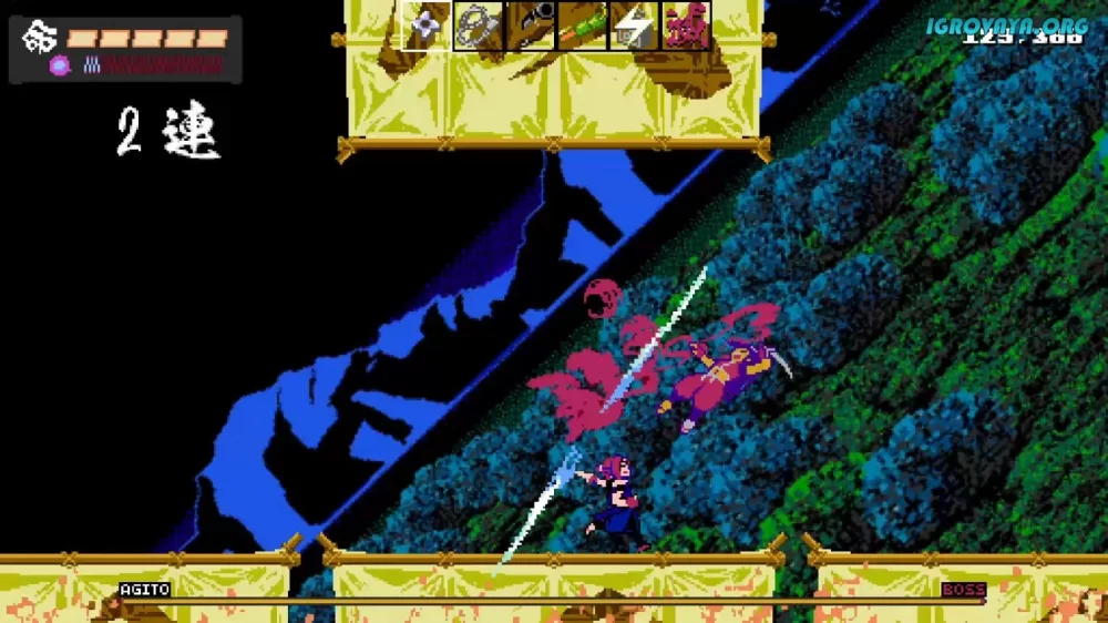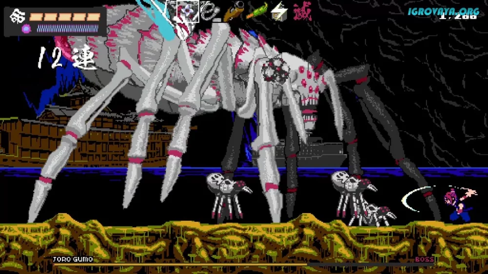 - Схватки с разнообразными боссами, каждый из которых обладает уникальным набором атак и является существом из японской мифологии.