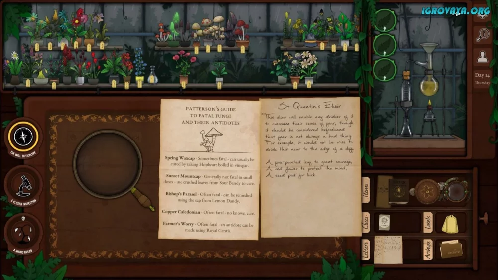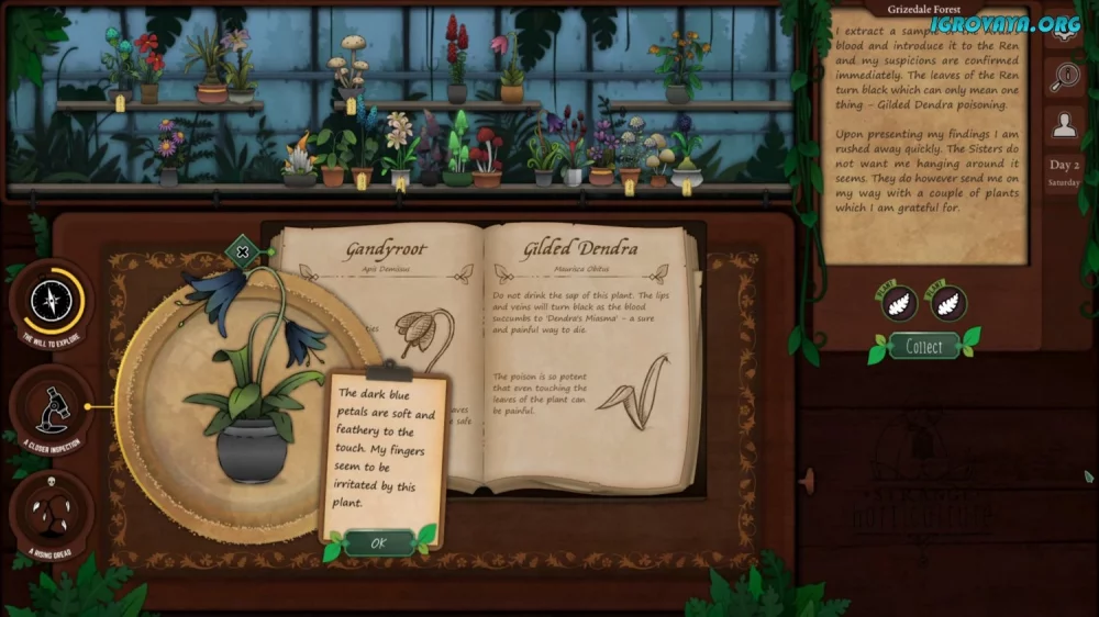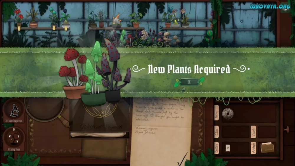 Strange Horticulture предлагает уникальный сюжет, переплетающий в себе магию, тайны и интриги. Играя в нее, вы окунетесь в захватывающий мир растений и магии, познакомитесь с ведьмами и колдунами, и узнаете много нового о древних тайнах, скрытых в глубинах города Андермир.