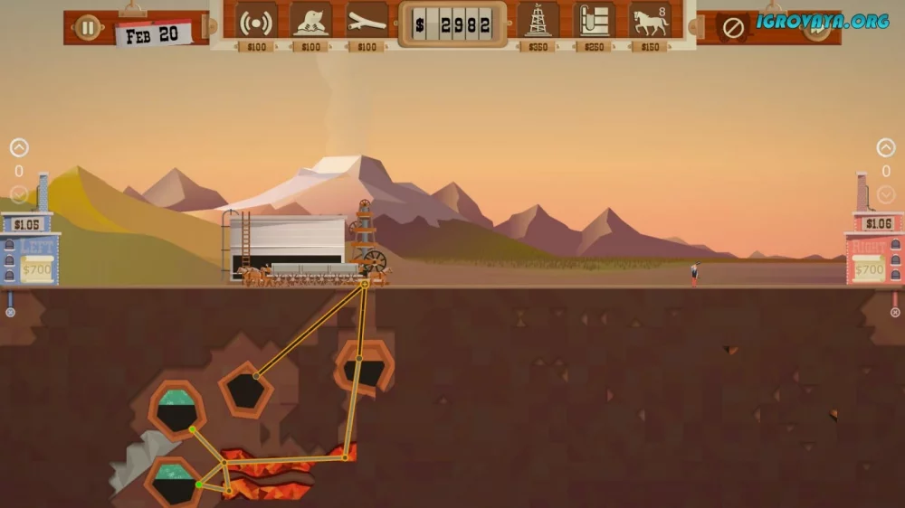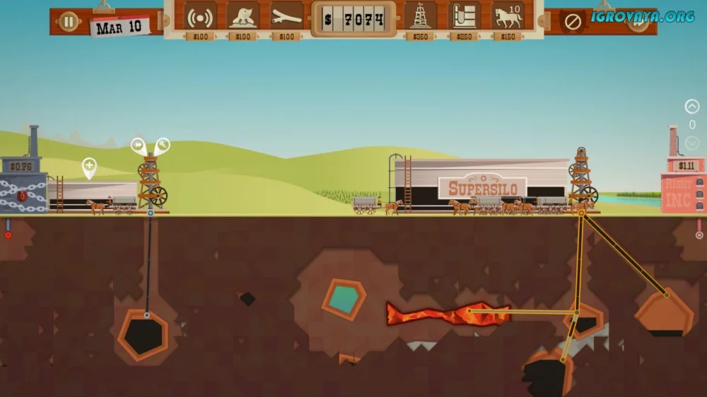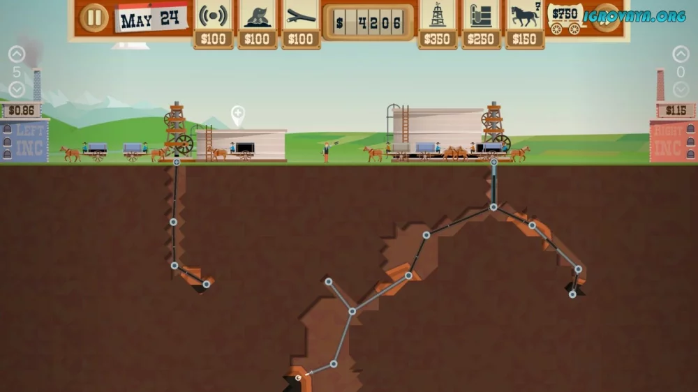 Арендуйте участок земли у местного города, обнаружьте месторождение и начните добычу нефти. Продавайте нефть по лучшей цене, увеличивайте доход и инвестируйте в новые вышки и акции города.