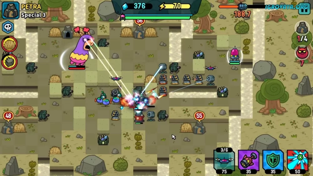 Но сам по себе сюжет не играет особой роли, когда речь заходит об игровом процессе. Tower Defense - это стратегия, в которой ваша задача строить оборонительные сооружения и защищать планету от вражеских нашествий. У вас есть возможность улучшать турели, создавать ловушки, усиливаться и выживать в схватках.