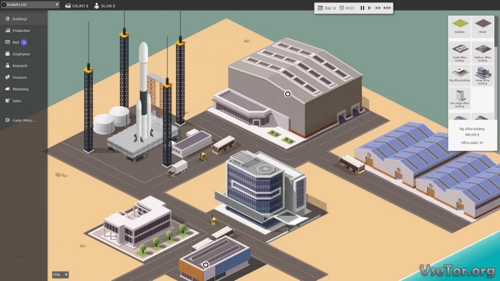 Помимо всего прочего, вы будете заниматься строительством зданий, фабрик и другой инфраструктуры. Например, начав делать самолеты, вам нужно будет строить заводы, склады и другие сооружения. Или же вы можете закупать детали у других производителей и собирать готовую продукцию.