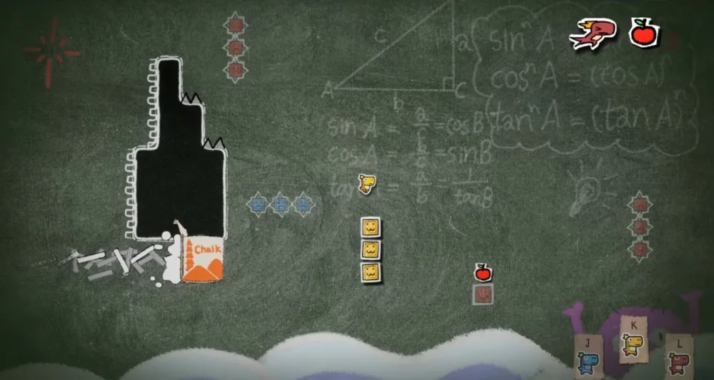 Исследуйте разнообразные плоские локации, которые оставят в вас приятное чувство ностальгии, ведь они наполнены детскими рисунками, меловой доской с задачами из математики и другими забавными элементами.
