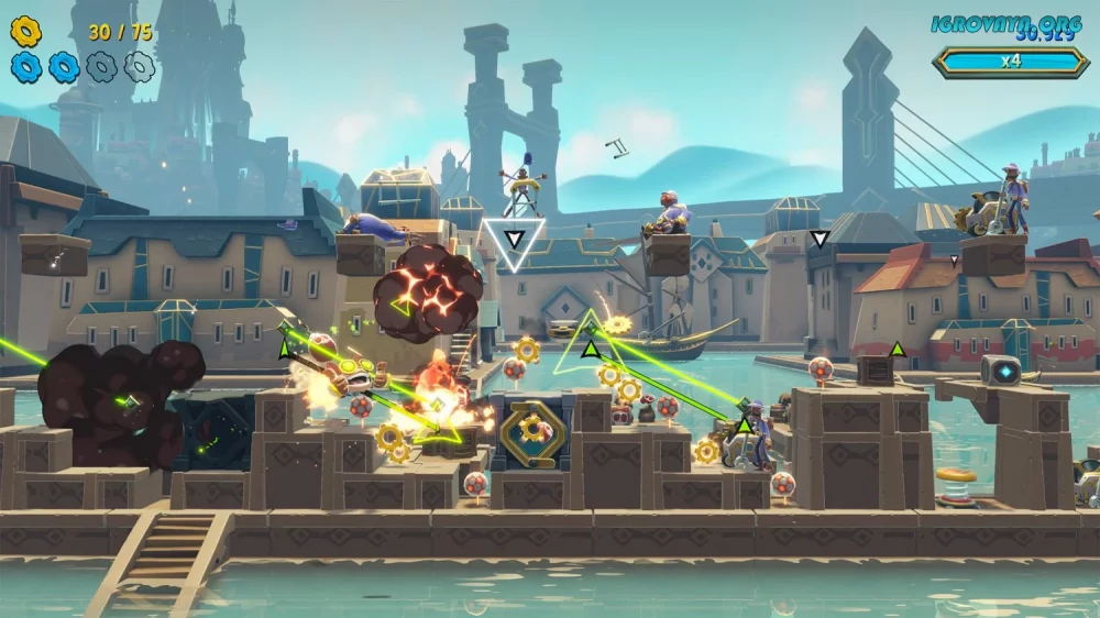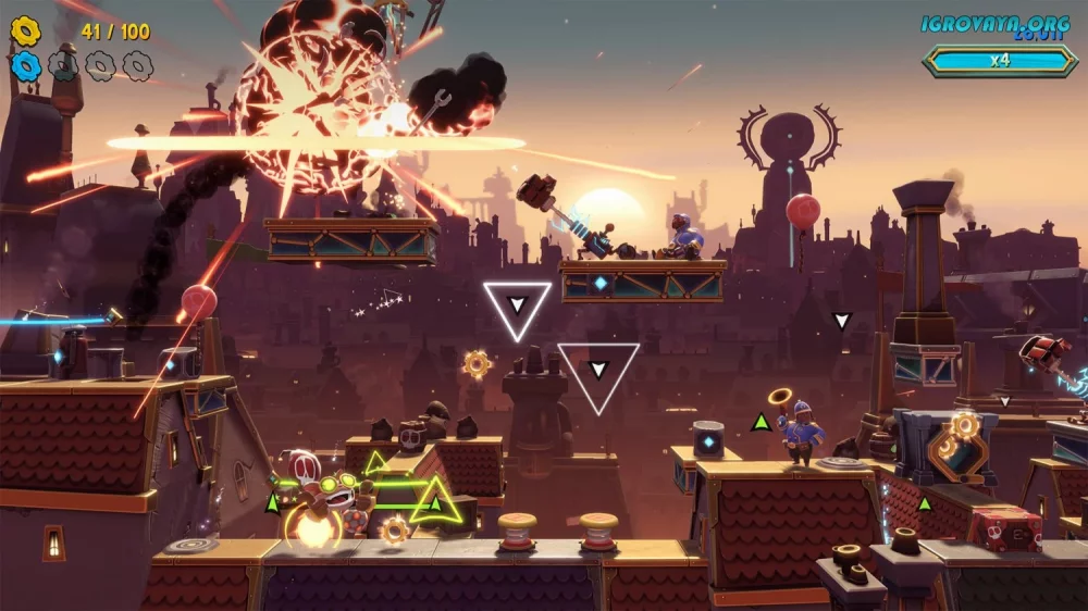 Преодолевайте препятствия, сражайтесь с врагами, уклоняйтесь от атак и создавайте взрывы, разрушая окружающий мир. Все это под аккомпанемент захватывающей музыки, подчеркивающей динамику игрового процесса.