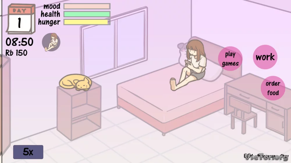 Игровой процесс в Stay: A Cute but Anxious Girlfriend Simulator не требует особых навыков - ваша цель проста: сделать все возможное, чтобы девушка не сошла с ума. Общайтесь с ней, помогайте в бытовых делах, следите за ее самочувствием. Каждое ваше действие влияет на ее психологическое состояние, и ваша роль как опекуна становится все более сложной с каждым днем.