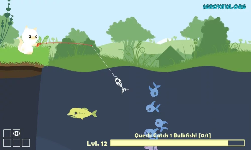 Действия игры разворачиваются на необычном водоеме, куда отправляется ваш персонаж – кот. Цель игры проста: поймать как можно больше рыбы. Но в Cat Goes Fishing не стоит ждать скучной рыбалки, где нужно просто ждать поклевки. Здесь каждый момент наполнен увлекательными открытиями.