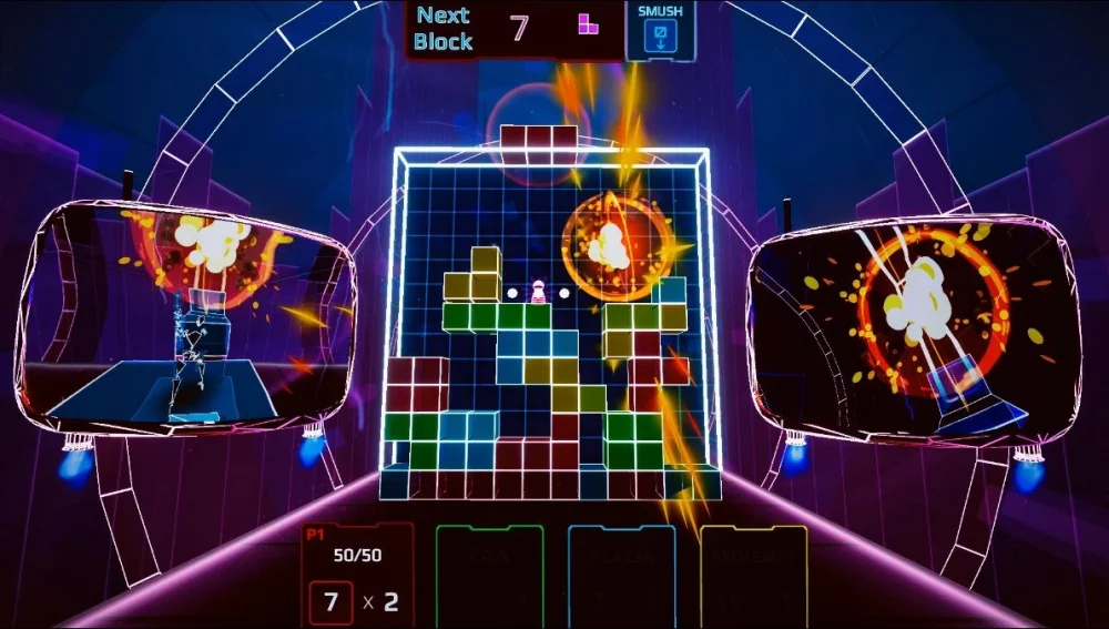 - Погрузитесь в локальный соревновательный режим, где два игрока сразятся в виртуальной реальности и за пределами нее. Один участник уклоняется от блоков, сбрасываемых на него, а другой кидает блоки в обычном режиме. Задача - набрать максимальное количество очков и подняться по лестнице.