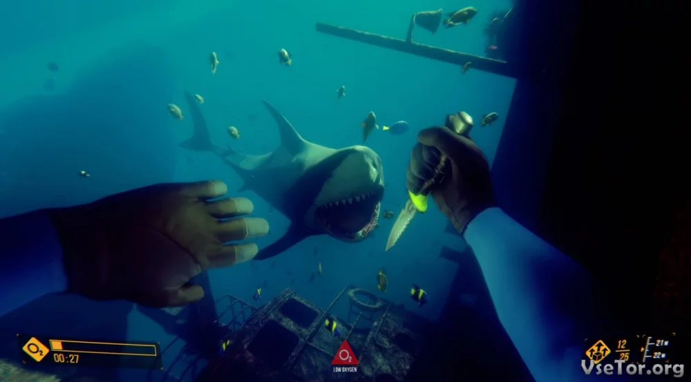 - Реалистичные опасности подводного мира, такие как декомпрессионная болезнь и нехватка кислорода.