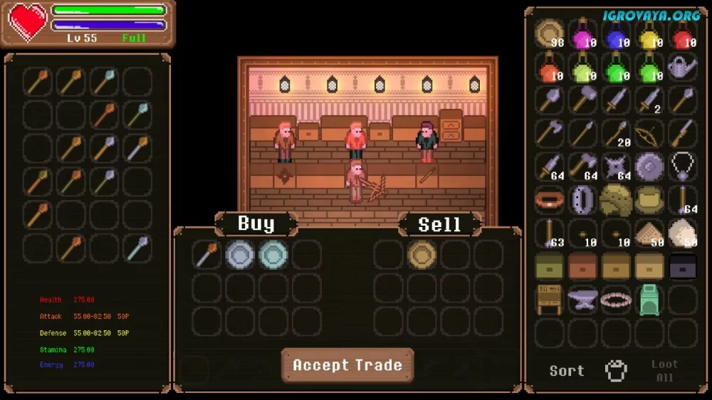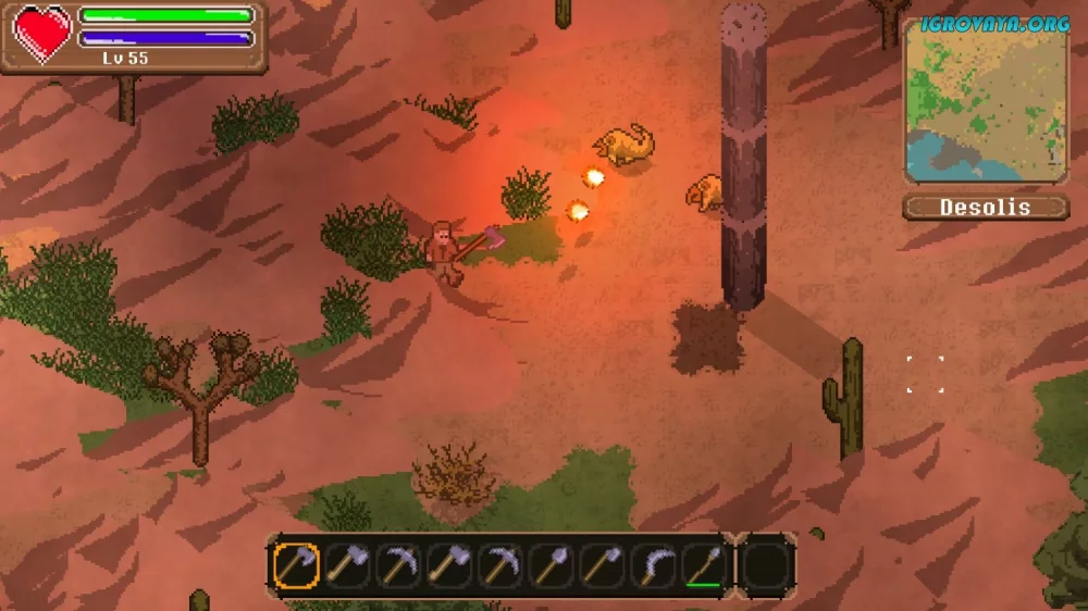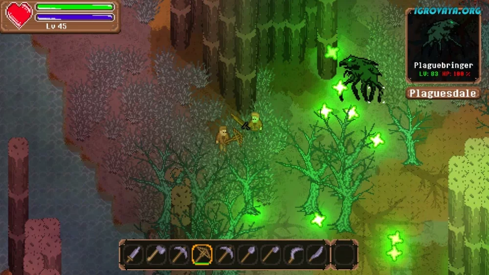 - Будьте готовы к сражениям с различными опасностями и монстрами, не забывайте оружие и броню.