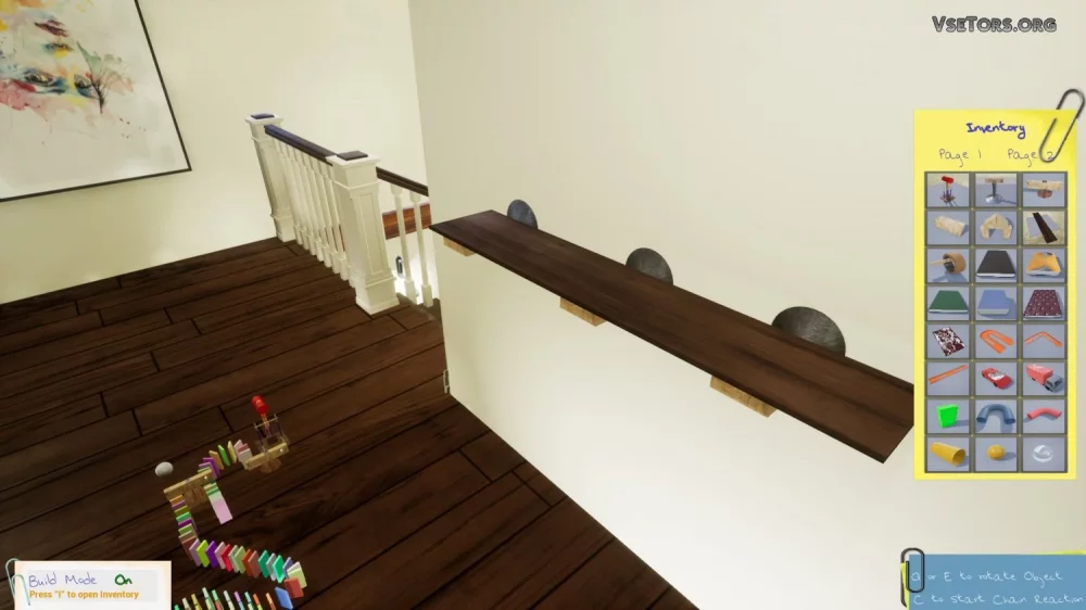 Вся игра разворачивается в огромном двухэтажном доме, где вы принимаете роль главного героя. На вас лежит ответственность использовать все предметы и вещи в доме, чтобы создать удивительные цепные реакции. Здесь нет никаких правил, кроме законов физики, что означает полную свободу действий.