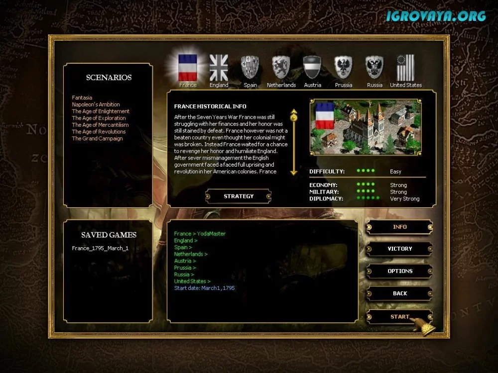 Каждая страна в игре имеет свои особенности и ресурсы, которые необходимо использовать максимально эффективно. Будьте готовы к вызовам и решайте сложные задачи, чтобы привести свою империю к процветанию.