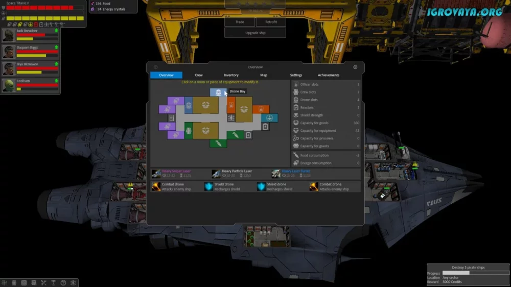 - Модернизация и улучшение космического корабля для борьбы с врагами и защиты колонии.