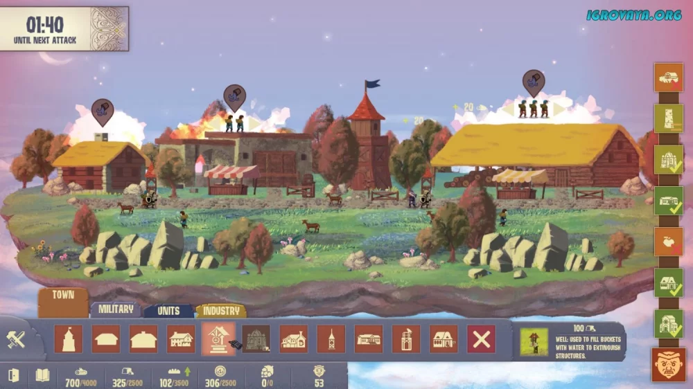 Откройте ворота! Это увлекательная двухмерная стратегия в реальном времени с оригинальным геймплеем и гибкой системой сложности. Перенеситесь в захватывающий мир Средневековья, где не утихает шум битвы, а местные воины стремятся к захвату. Возводите укрепления, стройте казармы, собирайте войска - все это для защиты своего замка от врагов. Выстраивайте различные тактики, основываясь на имеющихся ресурсах, разрабатывайте планы и испытайте их в бою, но будьте бдительны, ведь враги не дремлют и вернутся с подкреплением после каждого поражения.
