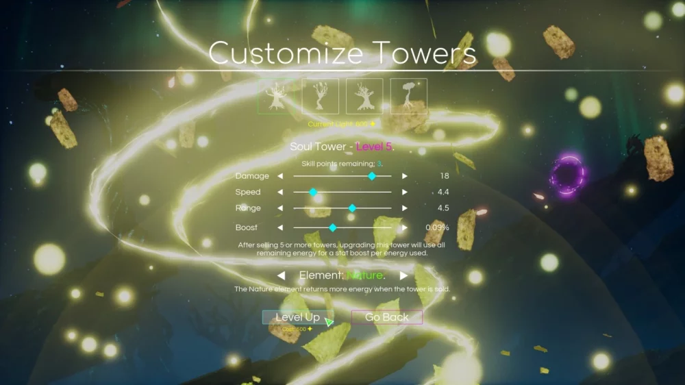 - Возможность распределения очков характеристик между башнями, позволяющая выбирать радиус, скорость атаки, урон и другие параметры для каждой постройки. Прокачивайте их так, как вам удобно, и создавайте уникальные комбинации.