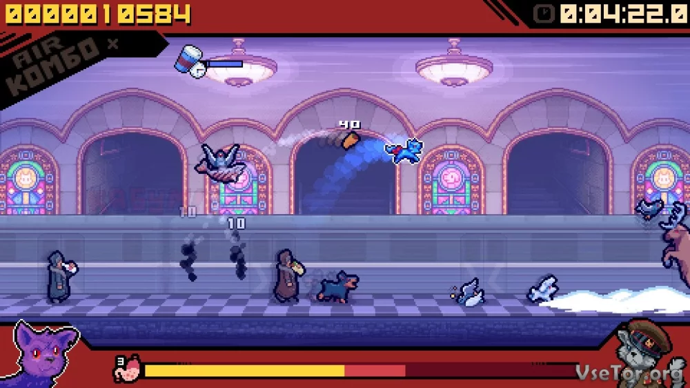 - Возможность пополнять здоровье соком и использовать водку в качестве бомбы.
