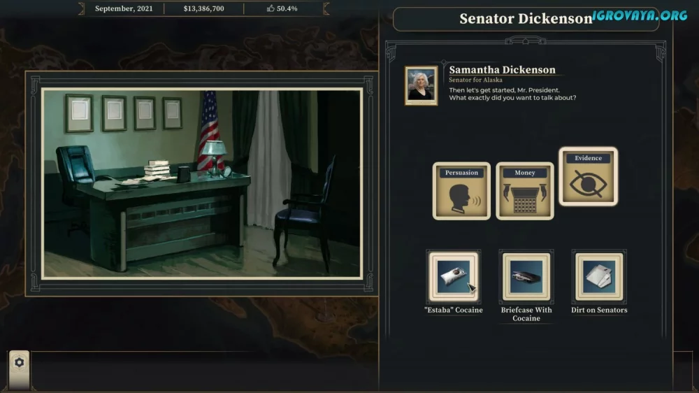 В This is the President – это забавное сочетание комедии и сатиры, симулятор игры, где вам предстоит вжиться в роль нового президента США с темным прошлым, стремящегося избежать наказания за свои преступные поступки…