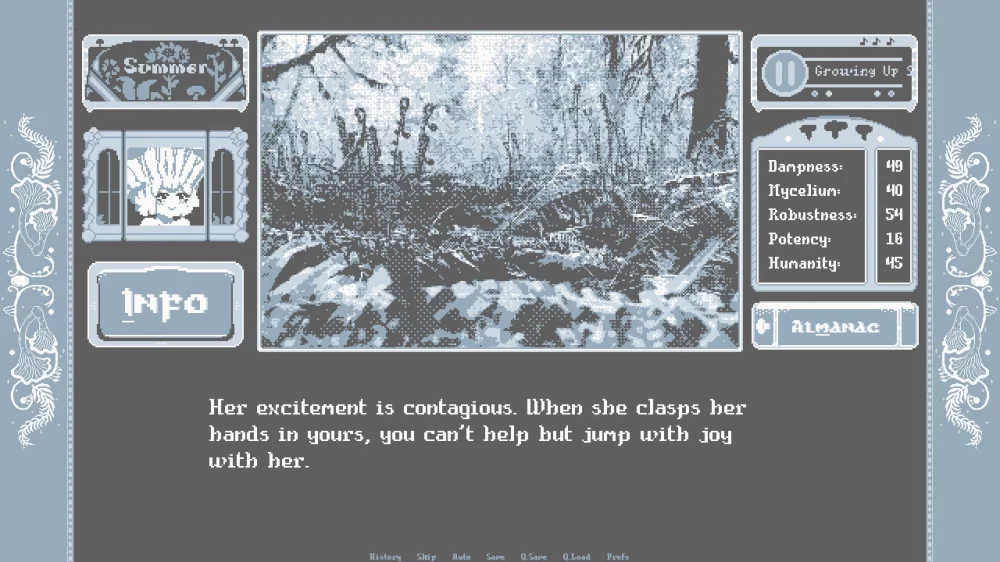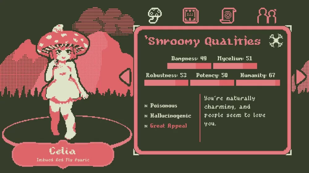 Каждый маленький грибок, который вырастает из земли, является прекрасным отражением вашего ухода и внимания. Выбирайте семена с умом, так как от них зависит характер и внешность вашего будущего ребенка. Будьте аккуратны - излишняя влага или пересушка могут привести к гибели грибочка и потере вашего труда. Mushroom Musume предоставляет вам возможность стать настоящим грибоводом, но помните, что ваша грибница предназначена только для вас, а не для продажи.