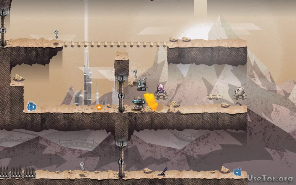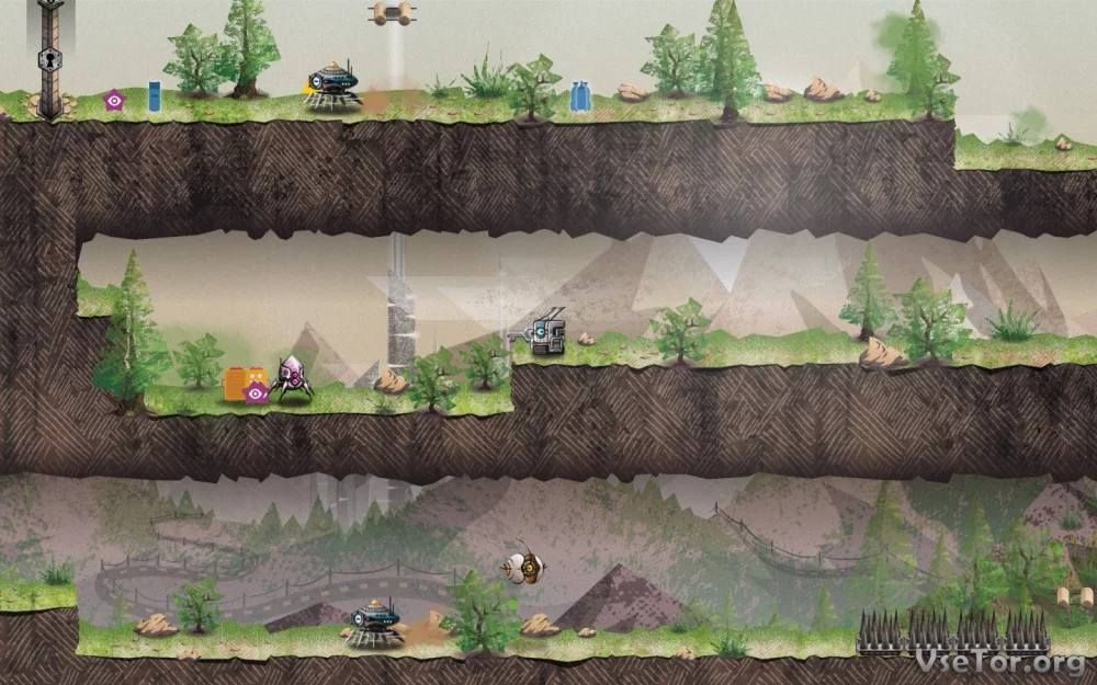 Каждый из роботов обладает уникальным набором навыков. Один из них способен летать, второй может переносить предметы, а третий обладает способностью телепортации. Используйте эти возможности с умом, чтобы преодолеть препятствия, созданные в пути.