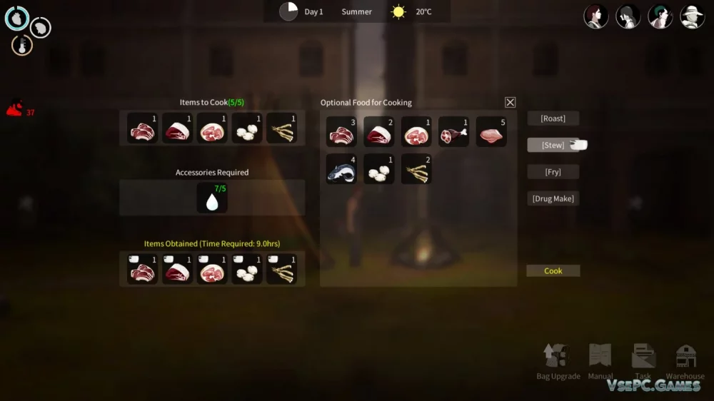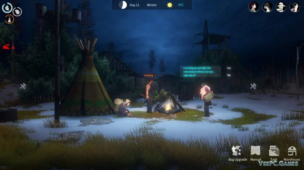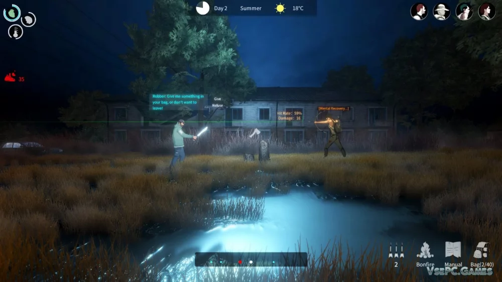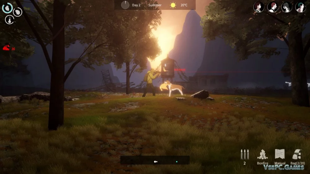 - Следите за состоянием персонажа, борясь с голодом, холодом, болезнями и опасностями.