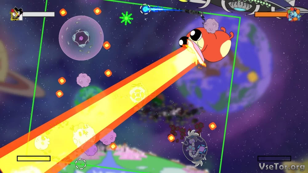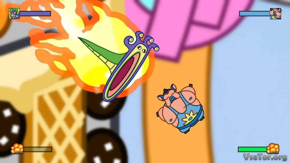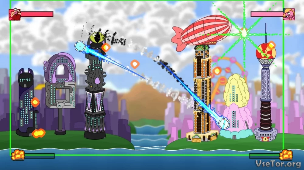 Одним из главных козырей игры является ее визуальное исполнение. Странные и экстравагантные персонажи, визуальные эффекты, взрывы и разрушения создают невероятную атмосферу. А добивающие удары, отправляющие врагов прямиком к ядру планеты, заставляют вас чувствовать себя настоящим повелителем битвы.