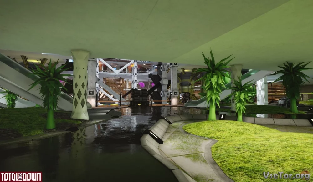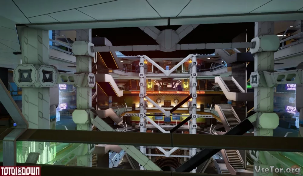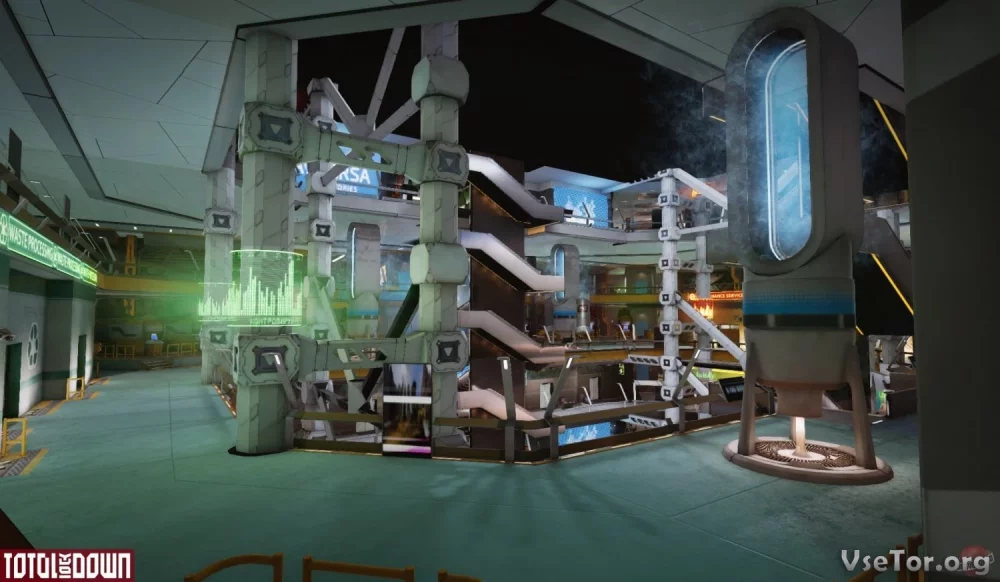 - Главной особенностью Total Lockdown является уникальный сеттинг. На этот раз вам предстоит окунуться в мир киберпанка, где битва происходит на двадцати этажах огромного здания. Здесь вам предстоит бороться за жизнь на каждом этаже, искать оружие, улучшения и снаряжение, чтобы выжить и победить других игроков.