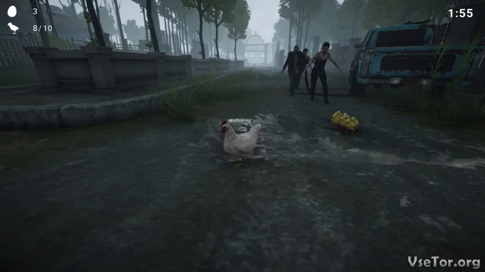 События в игре разворачиваются в мире, пережившем апокалипсис, вызванный зомби. Вам предстоит выживать в роли последнего оставшегося существа - курицы, которая должна защитить своих птенцов и найти им безопасное убежище. Каждый уголок этого мира наполнен угрозой, и только ваша храбрость и смекалка могут помочь вам пережить все испытания.