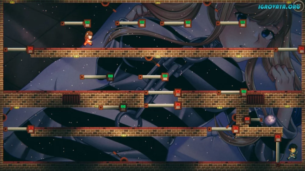Уникальность геймплея заключается в комбинации головоломки и платформера. Вам предстоит открывать двери, избегать ловушек и сражаться с врагами, чтобы добраться до цели. Взаимодействуйте с объектами на уровнях, используя различные механизмы и переключатели, чтобы пройти все 30 уровней и разблокировать не только разные концовки, но и откровенные сцены секса.
