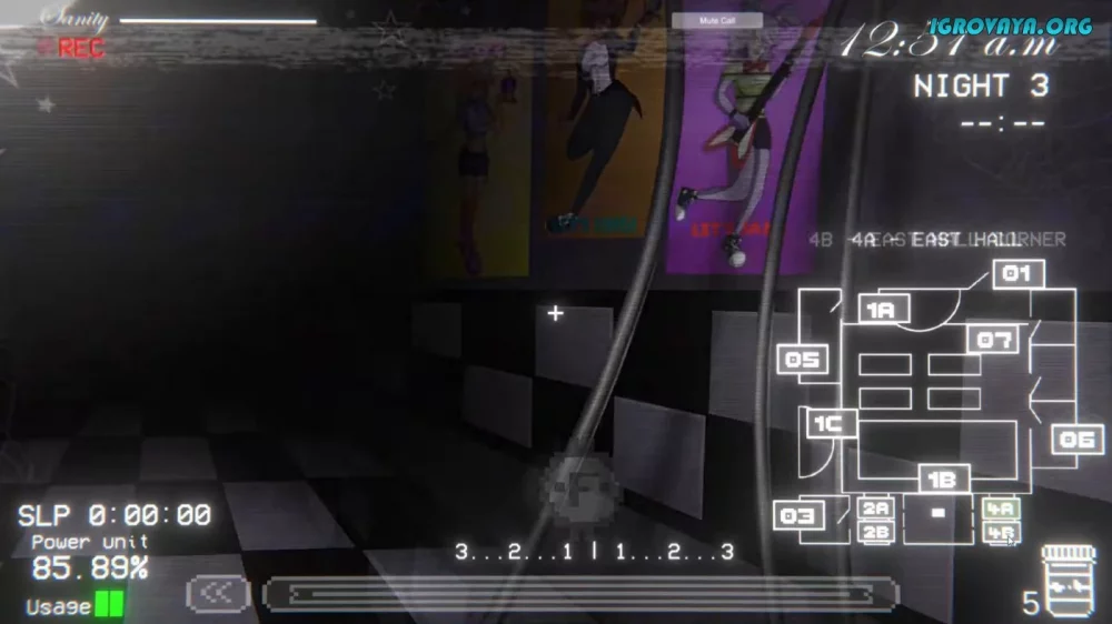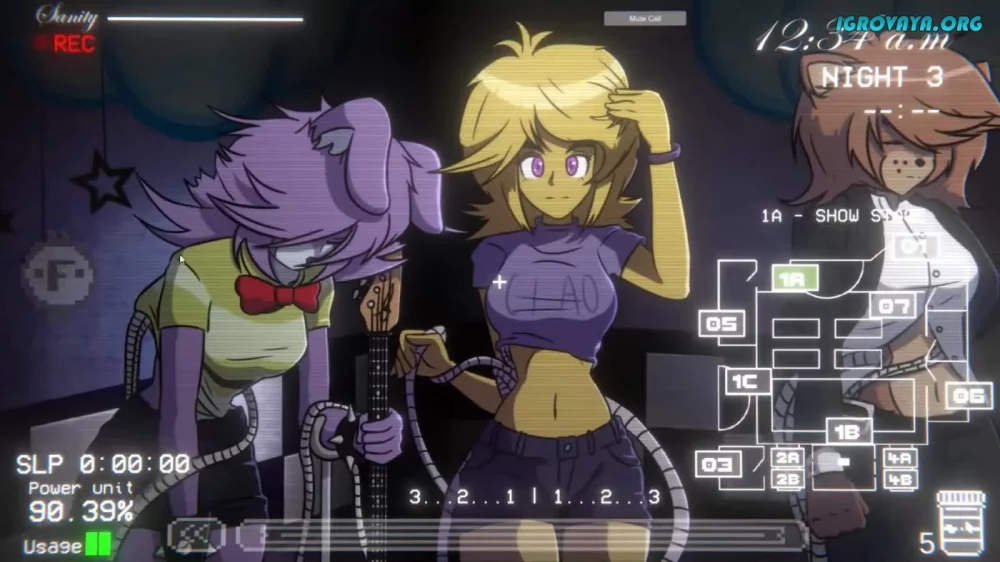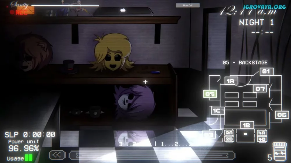 - Игровой процесс напомнит вам оригинальную версию ФНАФ: отслеживайте движение врагов по камерам, закрывайте двери вовремя и следите за энергией, чтобы не остаться без защиты.